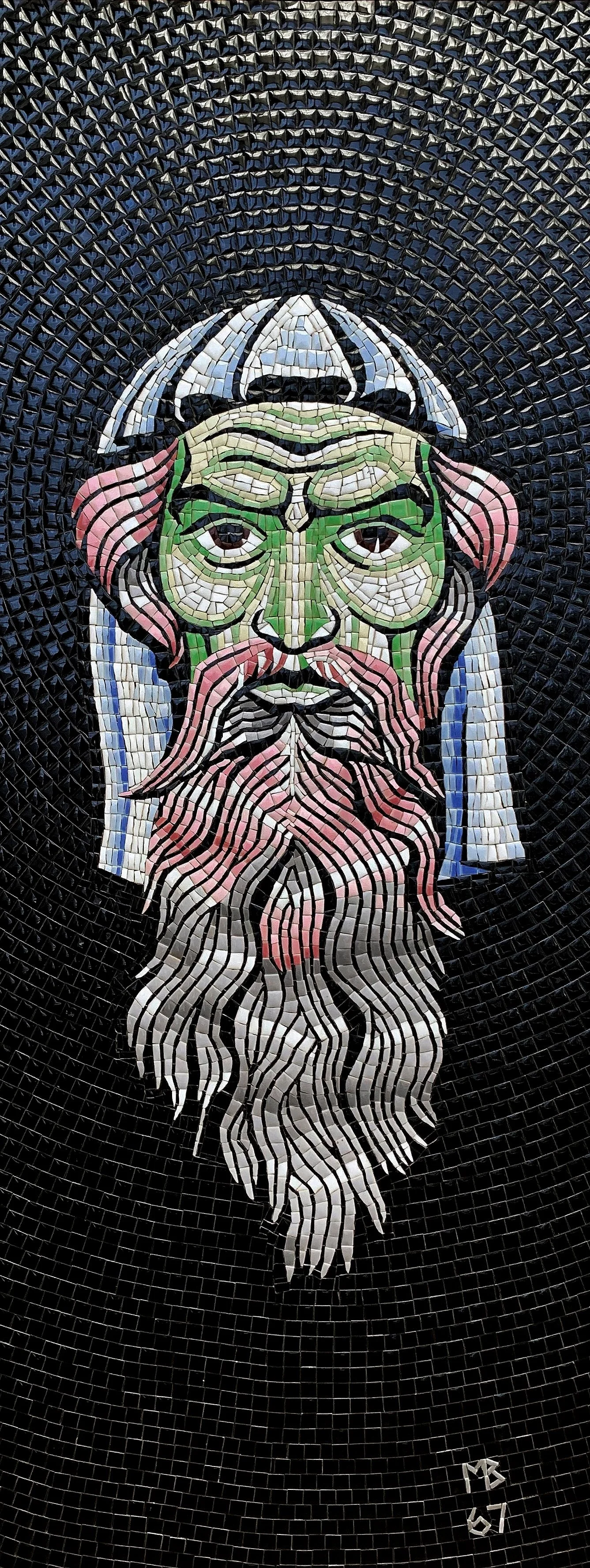 TOWER OF BABEL • 31”x25”  • 1980    Man constantly strives to achieve and to acquire. The Biblical tradition regarding the Tower of Babel was that it was built a mere 340 years after the Great Flood, which was a punishment for man’s evil ways. The